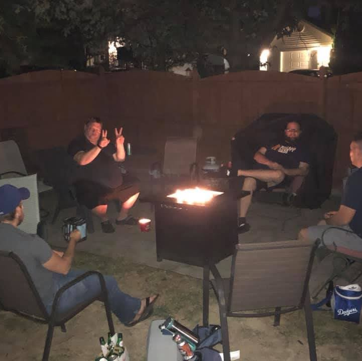 - Backyard gathering of dads to discuss being a better father, spouse, and man around a fire pit